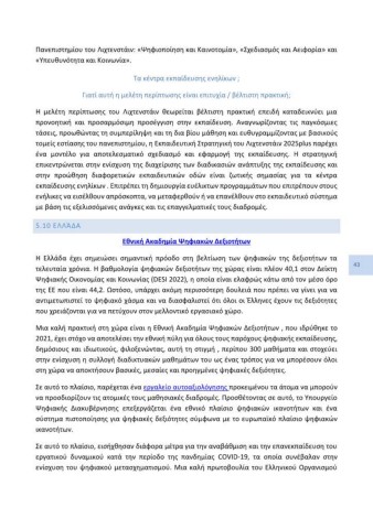 τελευταία χρόνια. Η βαθμολογία ψηφιακών δεξιοτήτων της χώρας είναι πλέον 40,1 στον Δείκτη